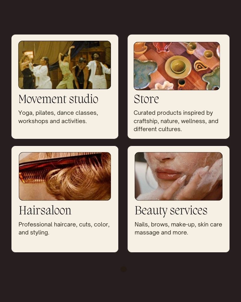 We worked on the foundational elements of the concept. In the first phase, we established the foundation of Angel Wellness Studio. We defined the brand guidelines and positioning by setting clear parameters for the mission, values, tone of voice, and market position, ensuring consistency across services and communication. We then translated the concept into a visual and spatial direction through a moodboard that guides interior design, branding, and future touchpoints. In parallel, we developed the business blueprint, outlining the operating model, service mix, and collaboration structure of the collective. This provided a clear and practical framework to support further development and the planned launch.